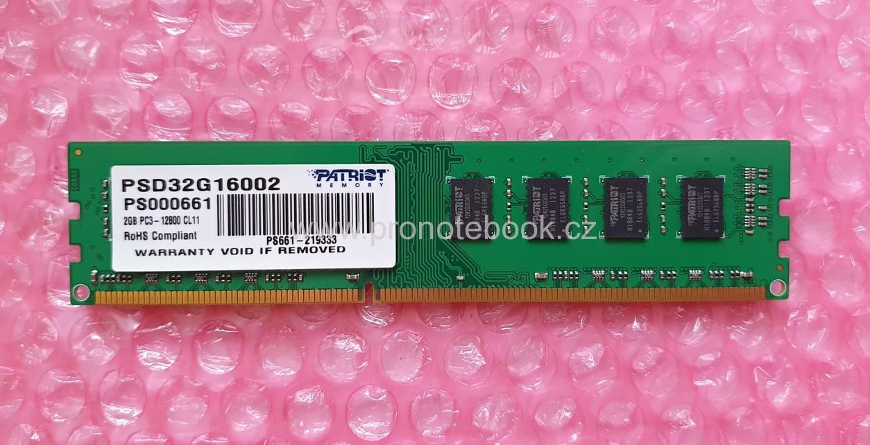 - PATRIOT Signature Line 2GB PSD32G16002 240Pin DIMM DDR3, 1.5V, 2Rx8, non-ECC, CL11, PC3-12800, 1600MHz SKLADEM