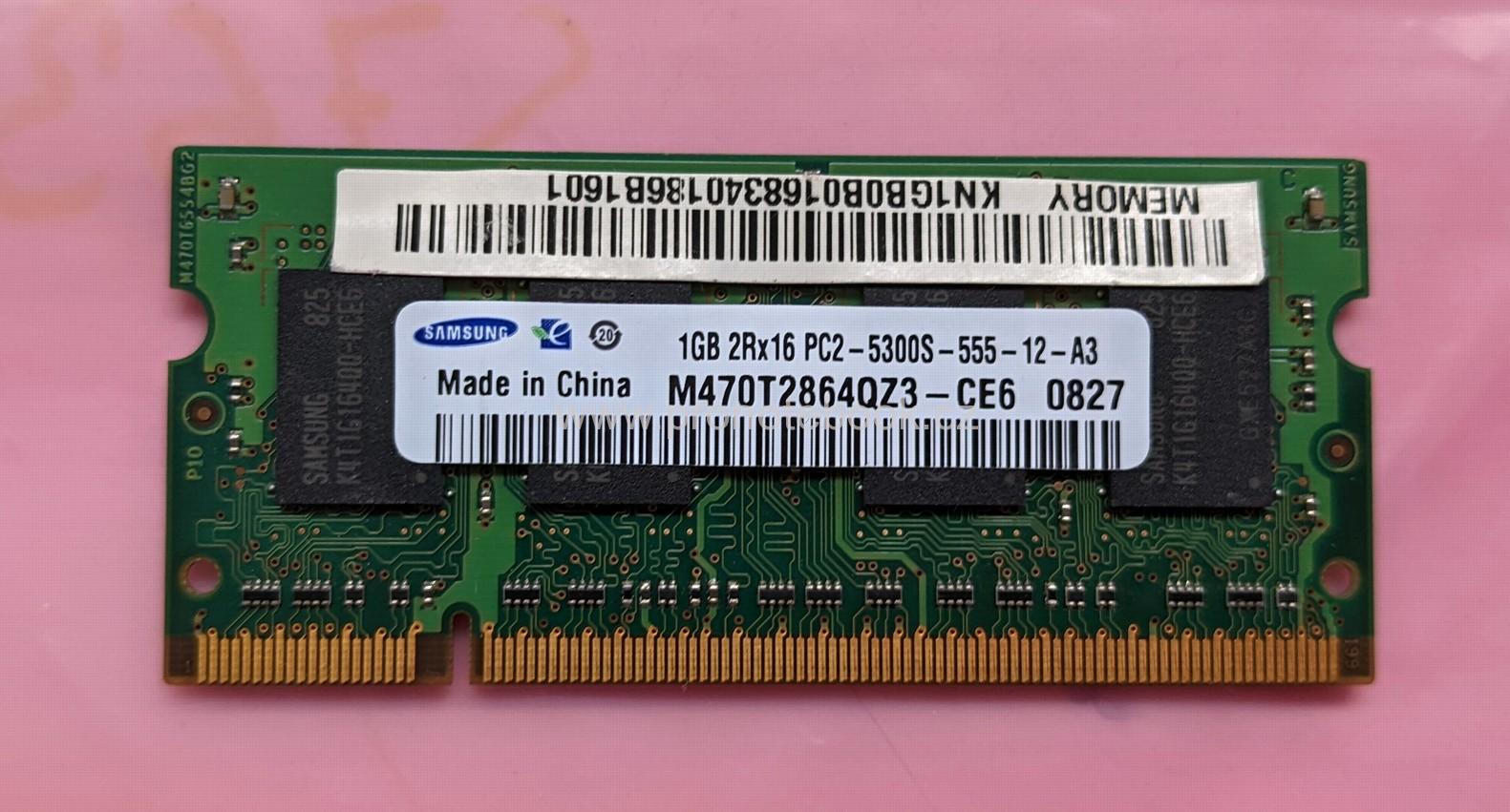 Samsung M470T2864QZ3-CE6 1GB DDR2 200-pin SO-DIMM PC2-5300 667MHz CL5 1.8V non-ECC.